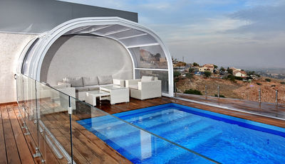 הקירוי ניתן לנעילה בקלות ובכך מונע כניסה לא מבוקרת לבריכה ושומר על ביטחון האורחים ועל אחראי הבריכה.